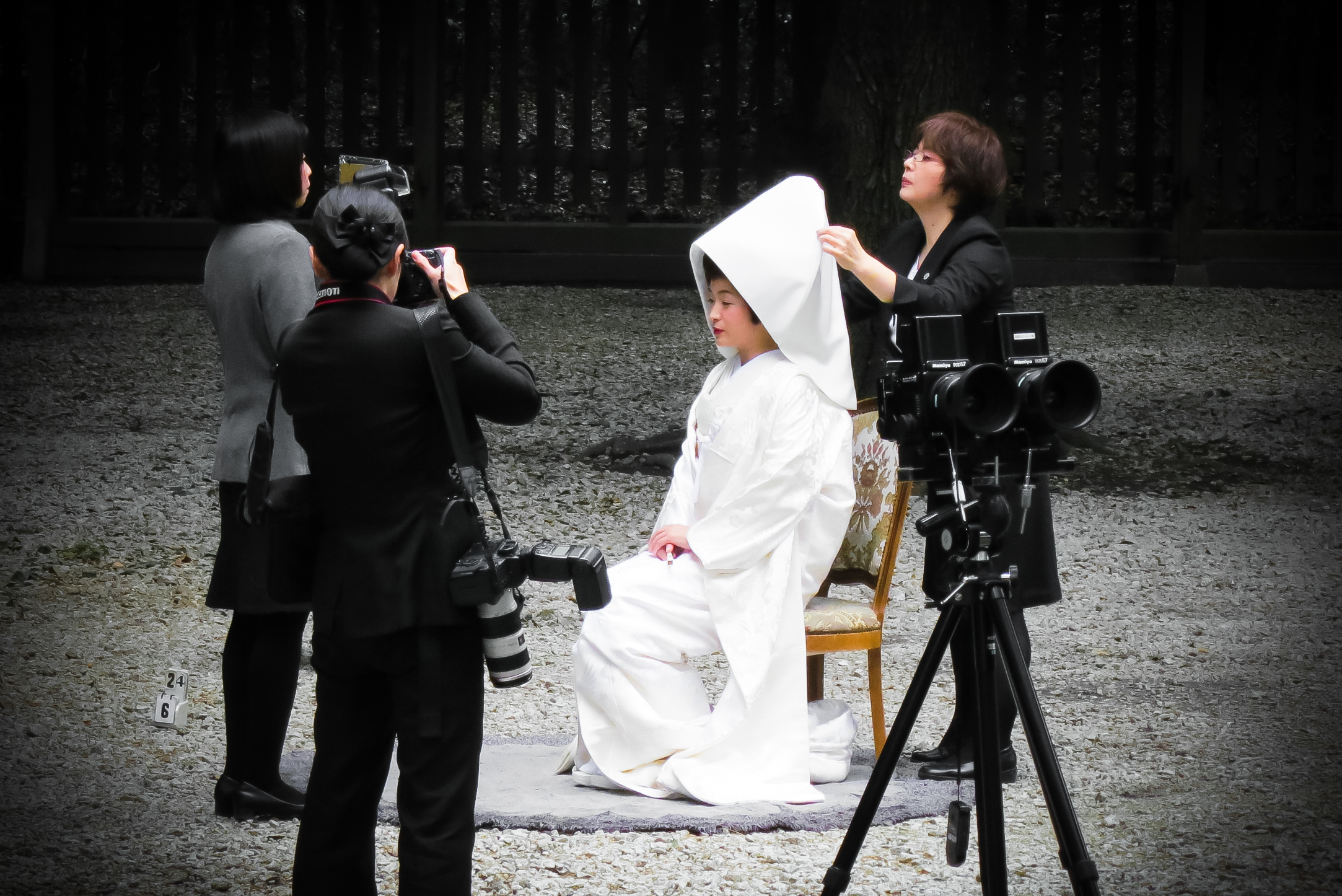 Jedes Wochenende finden hier Hochzeiten nach Shintō-Ritual statt. In einem Seitenhof werden die Hochzeitspaare und -gesellschaften in Form gebracht und fotografisch festgehalten.